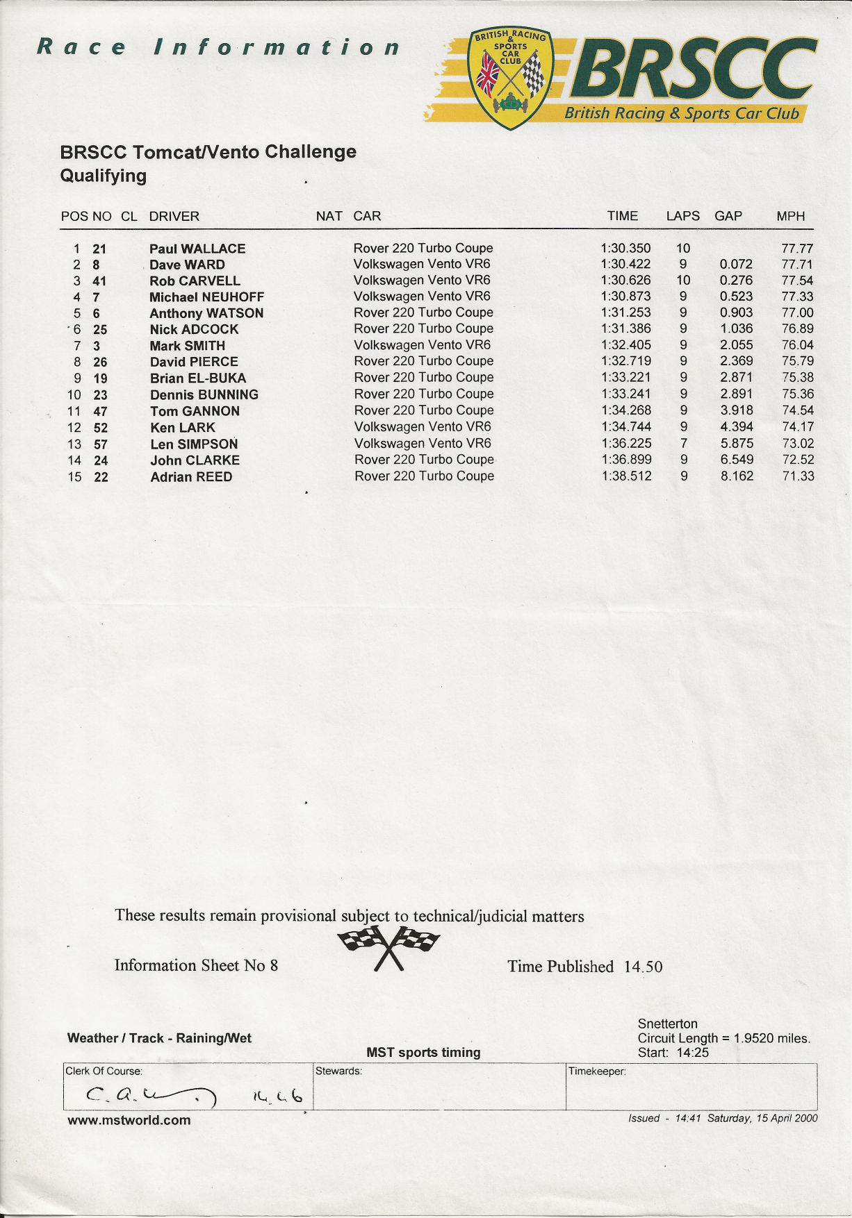 Snetterton | 15/04/00 | Tomcat Vento Challenge Race